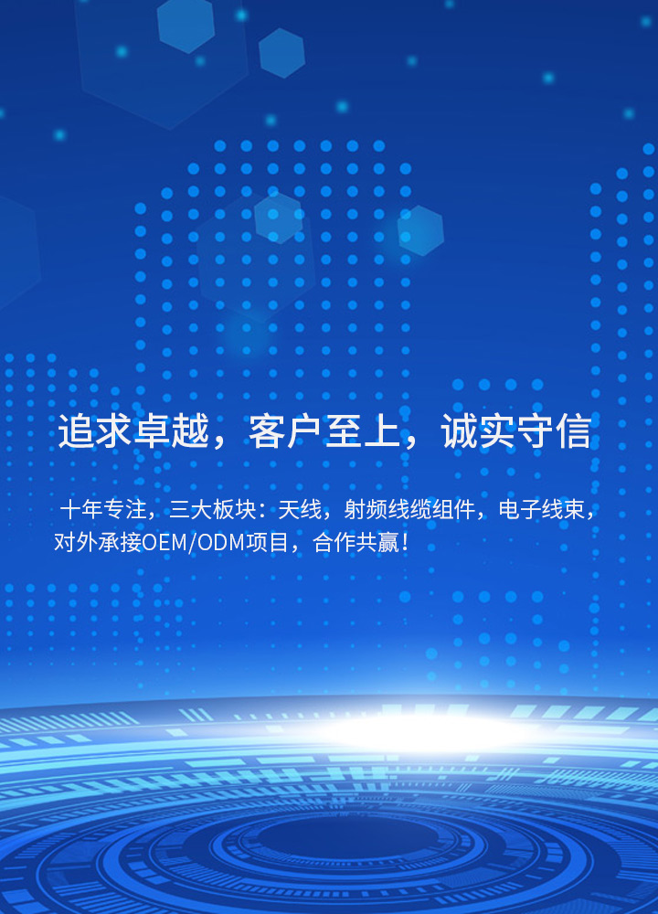 About us昆山英淋科電子有限公司成立于2013年,是一家致力于全球互聯(lián)產(chǎn)品的專業(yè)廠商,公司在上海和臺北設(shè)有研發(fā)中心,并建有先進(jìn)的微波暗室,昆山和南陽(河南)設(shè)有兩座制造工廠.公司下轄三大產(chǎn)品事業(yè)部:天線事業(yè)部,主要研發(fā)生產(chǎn)全系列各類天線,包含手機天線,無線路由器天線,NB天線,北斗天線,汽車天線,玻璃鋼天線,吸盤天線,F(xiàn)akra天線,5G天線,鐵氧體天線,RFID天線等,并研發(fā)定制各類天線。射頻事業(yè)部,主要研發(fā)生產(chǎn)射頻連接器,射頻線纜組件,射頻跳線,射頻測試線纜,通信基站、機柜射頻線纜等,包含0.81、1.13、1.37、RG174、RG178、RG179、RG316、RG58、RG141/142,以及半鋼半柔射頻線纜組件。電子線事業(yè)部,主要...